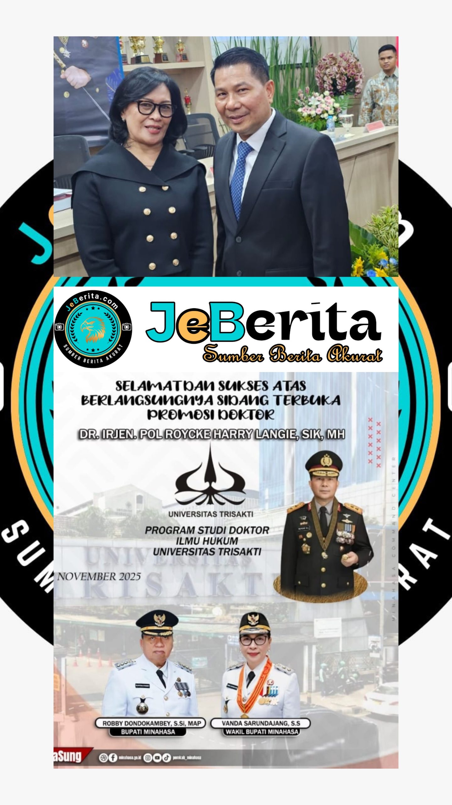 Pemerintah Kabupaten (Pemkab) Minahasa menyampaikan apresiasi dan rasa bangga atas capaian membanggakan Kapolda Sulawesi Utara, Irjen Pol Dr. Roycke Harry Langie, S.I.K., M.H., yang resmi menyandang gelar Doktor Ilmu Hukum dari Universitas Trisakti Jakarta, Selasa (11/11/2025).